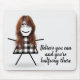 Cute Stick Girl with Hair and Quote Mouse Pad