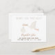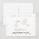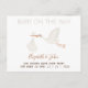 A cute stork illustration pregnancy announcement saying a baby is on the way.