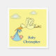 Cute Stork Baby Boy Shower Name Blue Yellow Napkin