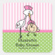 Cute Stork Baby Girl Baby Shower Square Sticker