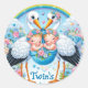 Cute Storks Carrying Twin Babies Classic Round Sticker