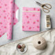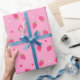 Cute wrapping paper for gifts on Valentine's day with strawberries and hearts pattern. Pink and red colors.