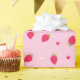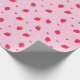 Cute wrapping paper for gifts on Valentine's day with strawberries and hearts pattern. Pink colors.