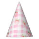 Cute Strawberry Berry Pink Gingham Brithday Party Hat