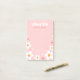 Cute sticky notes featuring white strawberry blossom on a pink background and your custom name in a retro font.