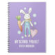 This product design features illustrations of a stuffed bunny, carrot, and pink heart. With its colourful graphics, it makes a cute and unique notebook for girls along with personalised text and your favourite background colour.