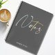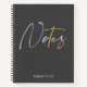 A cute, stylish notebook. With a dark grey background, the word Notes is in script typography in colours of light green, grey, yellow and pink. Underneath, in modern light grey typography it reads "things to do".