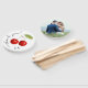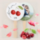 This photo hand fanhas two sides- on the front it has two pretty red cherries on a white background, a thank you message and a stylish customisable monogram with the initials of the bride and groom.