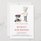 Cute and simple barbecue 40th birthday invitation with an illustration of a man cooking a steak. Illustrated and designed by Patricia Alvarez.