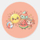 Adorable sticker sheet featuring cheerful summer friends with a smiling sun, watermelon, ice cream, beach ball, and a cute little girl in a sunny hat on a soft peach background. Perfect for decorating journals, planners, notebooks, scrapbooks, letters, and seasonal stationery collections. A bright and playful design full of warmth, sweetness, and happy summer vibes.