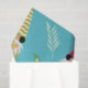 This is cute summer gnomes pattern holding watermelon, pineapple and strawberry and wearing sunglasses and tropical leaves around them on blue turquoise background. It's great supply for your kids birthday party or summer party
