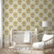 Stylised cute floral block print style wallpaper with whimsical sunflowers in warm earthy tones of mustard and light beige. Perfect for nurseries, girls bedroom or kids bathrooms