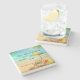 Coasters featuring an illustration of a sunny beach with your own custom texts.