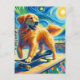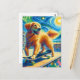 Cute Surreal Golden Retriever Skateboarding Postcard