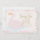 Cute Swan Pink Bow Confetti Girls Birthday Party Invitation