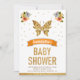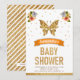 Cute Sweet Floral Gold Butterfly Girls Baby Shower Invitation
