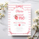 Celebrate your little Sweet One's first birthday with our darling Strawberry Girl 1st Birthday Invitation! This sweet design showcases a cute strawberry wearing a coquette pink bow on a charming red and white gingham background. Perfect for your little girl's first birthday celebration. Order now and get ready to spread the sweetness with this charming and unique invitation! Matching party accessories available.