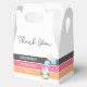 Adorable kid's birthday thank you favour box featuring a cute penguin with balloon and colour stripes on the background. Perfect party decor for girl's birthday celebration!