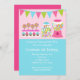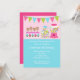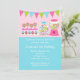 Start your sweet girl birthday party off right with our sweet treats kids birthday invitation featuring a turquoise blue polka dots background & a pink, green & blue birthday banner with a gum ball machine, lollipop candy & a cupcake. Cute for a first girls birthday party, candy birthday party, sweets birthday party or summer birthday party. Visit our shop to view other cute birthday party invitations & matching thank you notes, stickers & postage stamps. © Babystar Designs