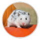 White Sprinkled Polywhite Syrian Hamster, white based fur with small black spots, these cute little house pets also called Dalmatian Hamster. Photo taken by Katho Menden, this ceramic knob for decorating furniture is an enchanting gift idea for hamster and pet lovers. http://www.zazzle.com/kathom_photo -