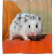 White Sprinkled Polywhite Syrian Hamster, white based fur with small black spots, these cute little house pets also called Dalmatian Hamster. Photo taken by Katho Menden, this shower curtain is an enchanting gift idea for hamster and pet lovers. http://www.zazzle.com/kathom_photo -