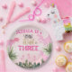 Cute T Rex Dinosaur Girl 3rd Birthday Party Paper Plate
