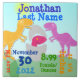 Cute T-Rex Dinosaurs and Newborn in Egg Boy Birth Tile. A cute little T-Rex dinosaur in egg and happy T-Rex parents birth tile with fully customisable texts: First Name, Last Name, Time of Birth, Date of Birth, Weight & Height. This beautiful nursery tile is fully customisable, add your texts and images! A beautiful cute dinosaurs boy baby shower gift for the proud new parents.