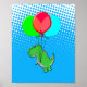 Cute T-Rex Flying With Balloons In Blue Sky Poster