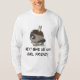 This tee shirt contains a cute cartoon character. Taucoo is a racoon playing as a pirate, with a pair of long rabbit ears, wearing a dark red hood which has a skull and crossing of knifes and swords on it. His fur is grey. There are several black rings on his long and big tail. He is angry and holding a big stick with many stings,sitting on ground.