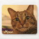 You will just fall in love with this cute tabby cat. This mousepad features a close-up photo of a lovely brown tabby kitty. The text "meow" is customisable. Great for anyone who loves cats!