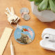 Cute tabby kitty cat, flowers and red bird on a circle. Text can be Personalised.