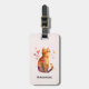 A luggage tag with an adorable watercolor illustration. An orange tabby cat looking friendly and happy with hearts swirling around.
