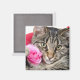 Cute pet tabby cat with pink rose © and ® Bigstock® - All Rights Reserved.