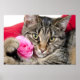 Cute pet tabby cat with pink rose © and ® Bigstock® - All Rights Reserved.