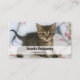 Business cards with a funny photograph of a tabby cat. Hair on his back slightly raised and he has a surprised expression on his face. Cute and adorable. Makes you smile. :)