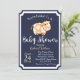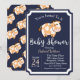 Cute Tan Baby Cow Calf & Dark Blue Baby Shower Invitation