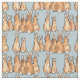 Cute Tan Bunny Rabbits on Blue Background Rustic Fabric