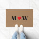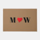 Cute tan red heart custom couple monogram initials modern typography Doormat.