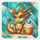 Cute Teal and Gold Dragon Boy's Birthday Party Square Sticker