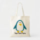 Cute teal and white penguin tote bag. This bag includes space to add your chosen text, if you so choose.