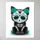 Cute Teal Blue Day of the Dead Kitten Cat, white Poster