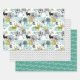 Cute Teal Blue Green Floral And Deer Art Pattern Wrapping Paper Sheet