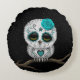 Cute Teal Day of the Dead Sugar Skull Owl Stars Round Cushion