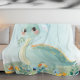 Cute Teal Dinosaur Kids Blanket with Blush Flowers