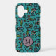 Cute Teal Floral Pattern Monogram