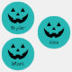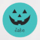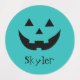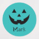 Halloween teal and black Jack o lantern pumpkin face custom name funny cute labels / stickers.