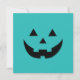 Cute teal and black jack o lantern carved pumpkin face spooky scary funny modern Halloween greeting card /Trick or Treat invitation.