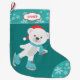 Cute Teal Snowflake Skating Bear Large Christmas Stocking