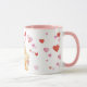 Lovely coffee mug featuring pink and red hearts and a cute artist Teddy bear, holding paint can and brush.