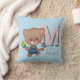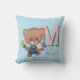 Cute Teddy Bear with Heart-shaped eyes with an Initial Alphabet Nursery Pillow in a nice light blue colour, holding a flower and a cute bird in his hand. Custom Personalised Pillow Gift, Baby Shower Gift, New Arrival Gift. The back of the pillow has a heart with text. Check similar pillows in this collection in different colours. Contact me if you like another colour of this pillow.